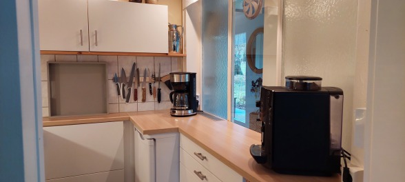 Ein Wasserkocher, eine Kaffeemaschine, Toaster und ein Mixer sind auch vorhanden!