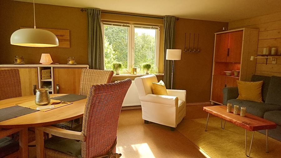Im März 2020 ist ein weiteres gemütliches Ferienhaus für 2-4 Personen fertig geworden. Der große Garten mit überdachtem Freisitz lädt zur Entspannung ein. Wie auch unsere beiden anderen Häuser ist auch dieses Haus mit ökolgischen Materialien ausgebaut. Lehmputz an allen Wänden sowie der geölte Korkfußboden tragen zu einem angenehmen Wohnklima bei.